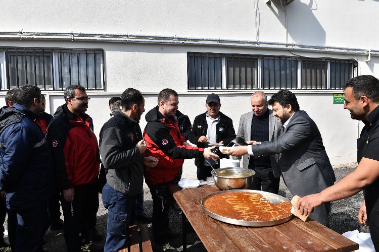 Osmangazi Belediyesi’nin Soğanlı’daki şantiye birimlerinde taş ocağı kuran ve ‘Mustafa Dündar’ ve ‘Osmangazi Belediyesi’ sözleriyle künefeler pişiren Sipahi, belediye çalışanlarına deprem bölgesinde özverili çalışmalarından dolayı teşekkür etti.