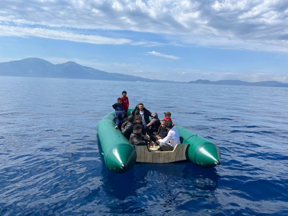 Kuşadası açıklarında 13 düzensiz göçmen lastik botla kurtarıldı.