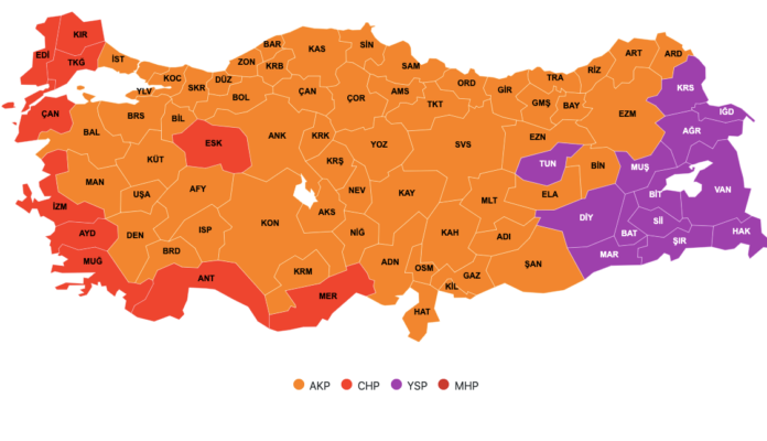 Anketin kent kent seçim sonucuna yönelik oy oranları şöyle: