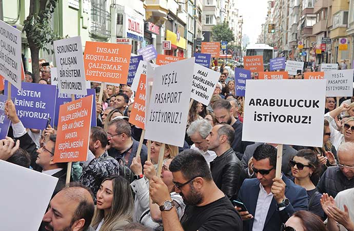 İstanbul’da 55 bin üyesi bulunan İstanbul Serbest Muhasebeci Mali Müşavirler Odası’nın (İSMMMO) Şişli’deki merkezi önünde bir araya gelen yüzlerce Mali Müşavir, “Artık günlük işlerimizi bile yapamaz hale geldik ve bıçak kemiğe dayandı. Sesimize kulak verin, taleplerimizi bir an önce hayata geçirin” dedi.