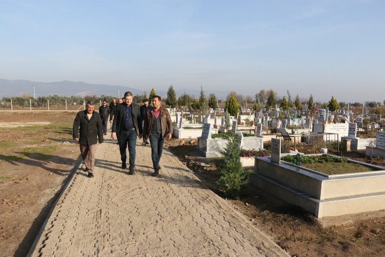 Manisa Büyükşehir Belediyesi Fen İşleri Daire Başkanı Uğur Topkaya, Mezarlıklar Daire Başkanı Orçun Abalı ile birlikte, Manisa Büyükşehir Belediyesi’nin Turgutlu İlçesi’ndeki Urganlı Mahallesi Mezarlığı’nda yaptığı ana parke taşı düzenleme çalışmalarını inceledi. Manisa Büyükşehir Belediyesi, sosyal belediyecilik kapsamında vatandaşların manevi bağ kurduğu mezarlıklarda çalışmalarını tüm hızıyla sürdürüyor.