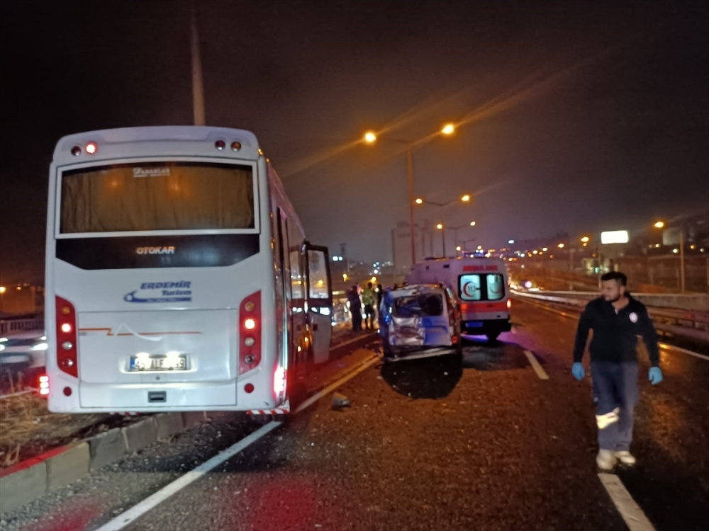 Çarpışmanın etkisiyle midibüs refüje çıkıp, aydınlatma direğine çarparak durdu.