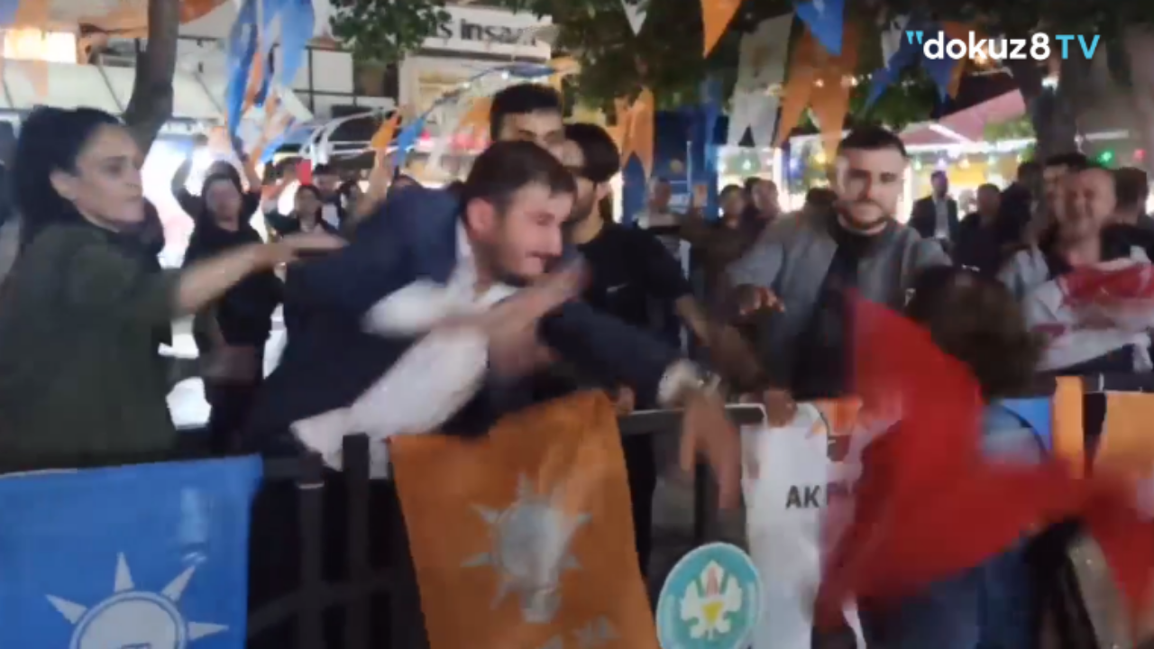 Bazı AKP’liler, yolda demir parmaklıklar ardında yürüyen CHP’lilerin üzerine Rabia işareti koyarak “Adam iyi adam Recep Tayyip Erdoğan” sloganları atarak kadına küfür işareti yaptı. Seçim müziğinin sesini yükselten AKP’ye CHP’liler, “Biz Mustafa Kemal’in askeriyiz” sloganlarıyla karşılık verdi.
