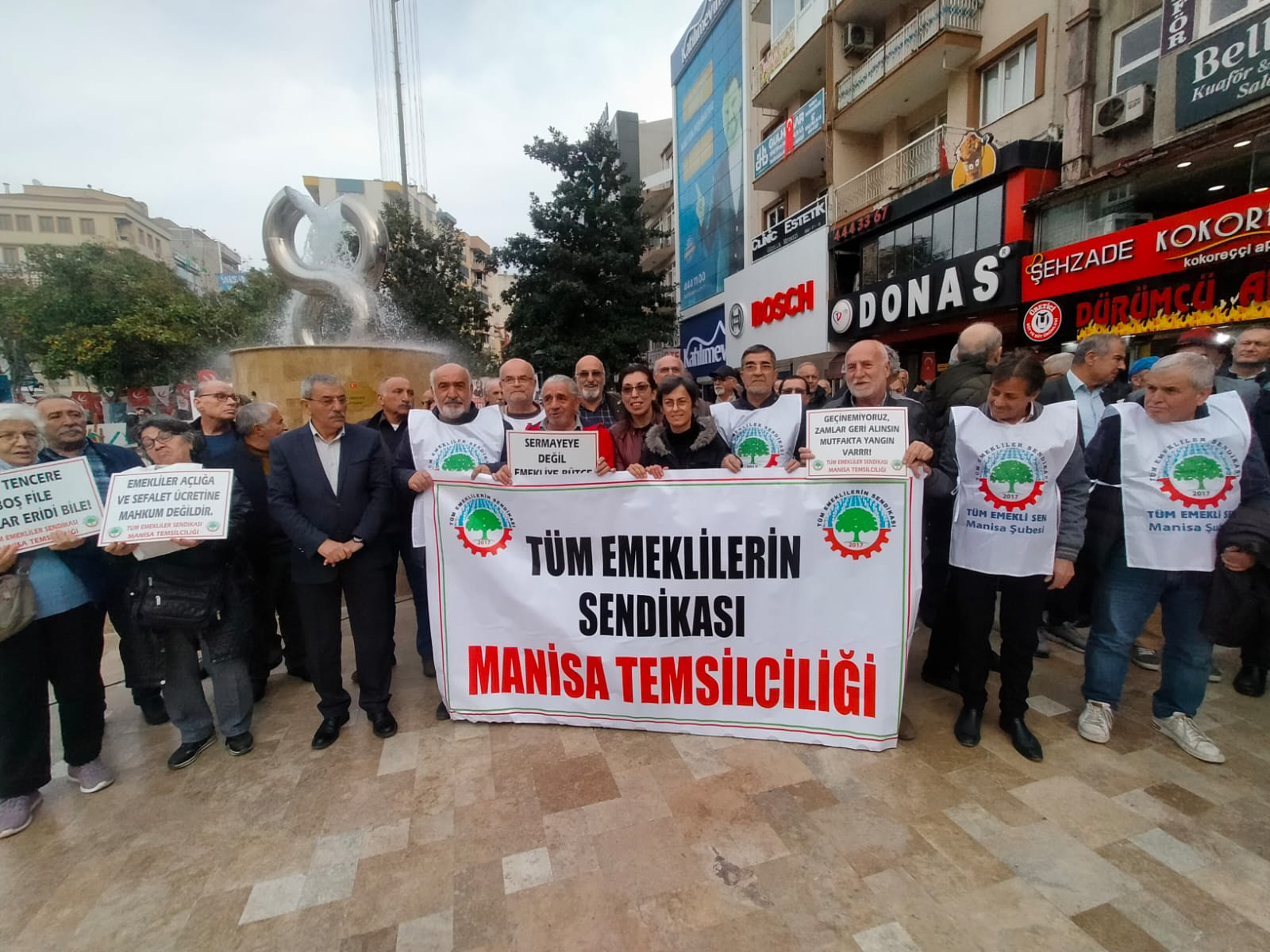 Manisa’daki emekliler, açlık sınırının altında aldıkları emekli maaşına itiraz etmek için bugün sokağa indi. Tüm Emeklilerin Sendikası Manisa Şubesi’nin Manolya Meydanı’nda düzenlediği eyleme sivil toplum örgütleri ve CHP’liler destek verdi.