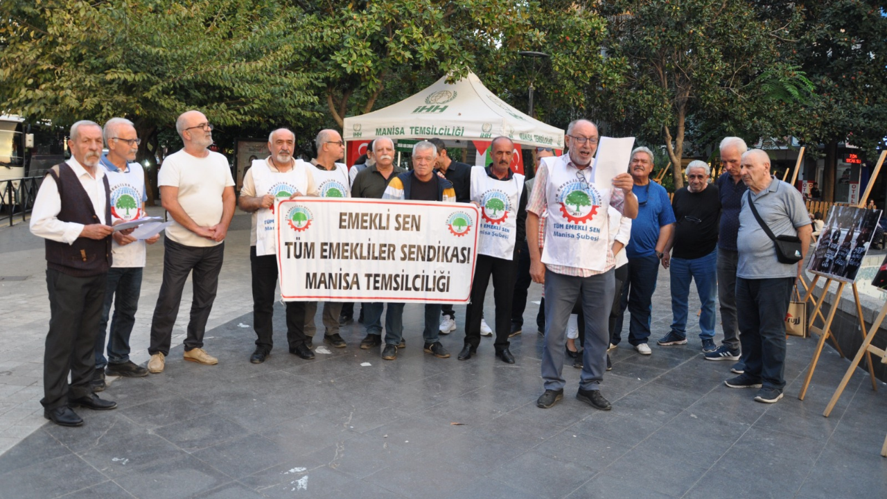 Basın açıklamasını topluluk adına Tüm Emeklilerin Sendikası Manisa Temsilciliği Yönetim Kurulu Üyesi Veli Ongun okudu. Emeklilerin örgütlenmesinin yine engellenmek istediğini ifade eden Ongun, 2021 Ekim ayında o zamanki adıyla Tüm Emekli Sen’in iktidarın baskısıyla yargı tarafından kapatıldığını hatırlatarak “30 Kasım 2022’de Tüm Emeklilerin Sendikası adıyla yeniden kurulduk. Aradan 4 ay geçtikten sonra ,Ankara valiliği bize yine dava açtı. Daha bir yılımız dolmadan yarın ,yani 17 Ekim’de yine kapatma istemiyle yargılanacağız. Oysa biz emeklilerin yararına çalışan bir sendikayız. Emekli ve yaşlı vatandaşlarımızın mağdur olmamaları için mücadele ettik. Ülkemizin demokratikleşmesi için mücadele ettik. Emekli vatandaşlarımızın açlığa mahkum edilmesine karşı çıktık. Hak ve hukukun tesisini istedik. Yokluğa, yoksulluğa karşı çıktık. Erdoğan’ın emeklilerin bir bölümüne, çalışan emeklileri dışında tutarak , Kasım ayı içinde bir defaya mahsus olarak 5000 lira verileceği açıklaması hem adaletsizdir , hem de emeklilerin yoksulluğuna çare olması mümkün değildir. Bu pervasız uygulama emeklilerin yeterince örgütlenememiş olmasınında bir sonucudur .Oysa yeterince örgütlü emekli topluluğu olsaydık ,emeklilerin bu şekilde onuruyla oynanılamazdı. İktidarı bir kez daha uyarıyoruz. Emeklilerle oynamayın. Yoksulluğa boğdukları yetmezmiş gibi, emeklilerin yoksulluğa, ölüme mahkum edilmesi yetmezmiş gibi bir de sendikamıza saldırılmasını, kapatma davaları açılmasını asla kabul etmiyoruz. Her vatandaşın iyi yaşama hakkı vardır. İyi yaşamak için demokratik ve barışçıl olmak kaydıyla her vatandaşın örgütlü veya örgütsüz mücadele etme hakkı vardır. Şu an Türkiye’de emeklilerin bırakalım iyi yaşadıklarını, bırakalım yoksul yaşadıklarını ,açlık sınırı altında sürünüyorlar. Bu ayıp iktidarındır.” ifadesini kullandı.