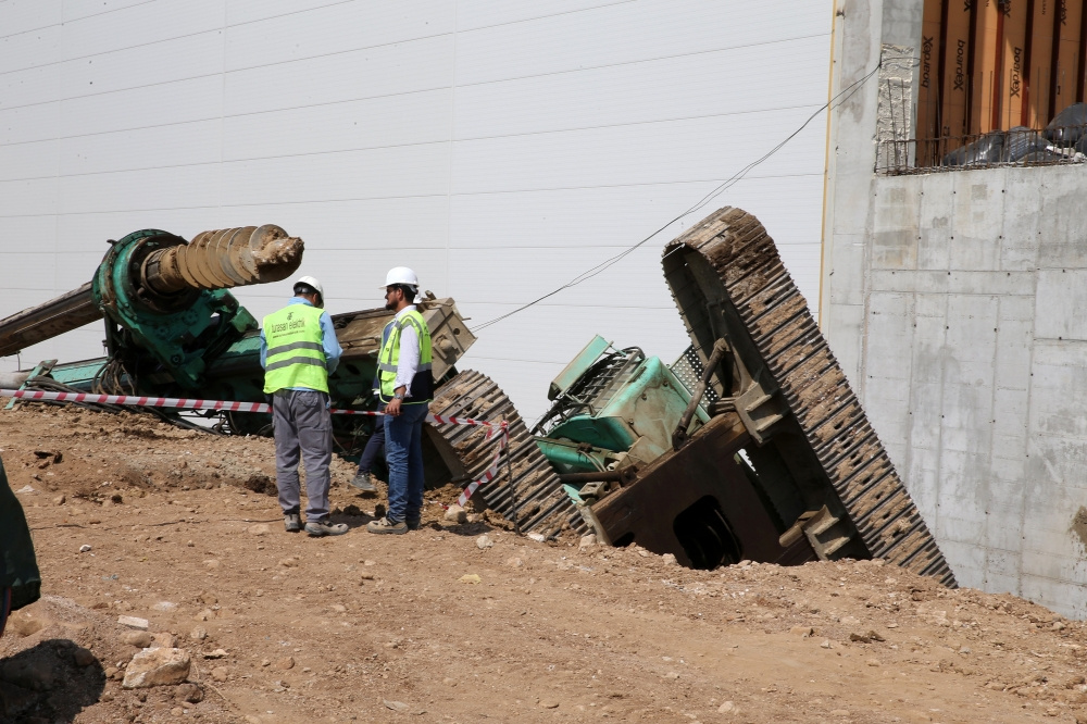 Manisa Organize Sanayi Bölgesi Hasan Türek Bulvarı’nda yapımı süren bir fabrika şantiyesinde çalışan fore kazık makinesi, aynı bölgede beton döken 35 HEA 37 plakalı beton kamyonunun üzerine devrildi.