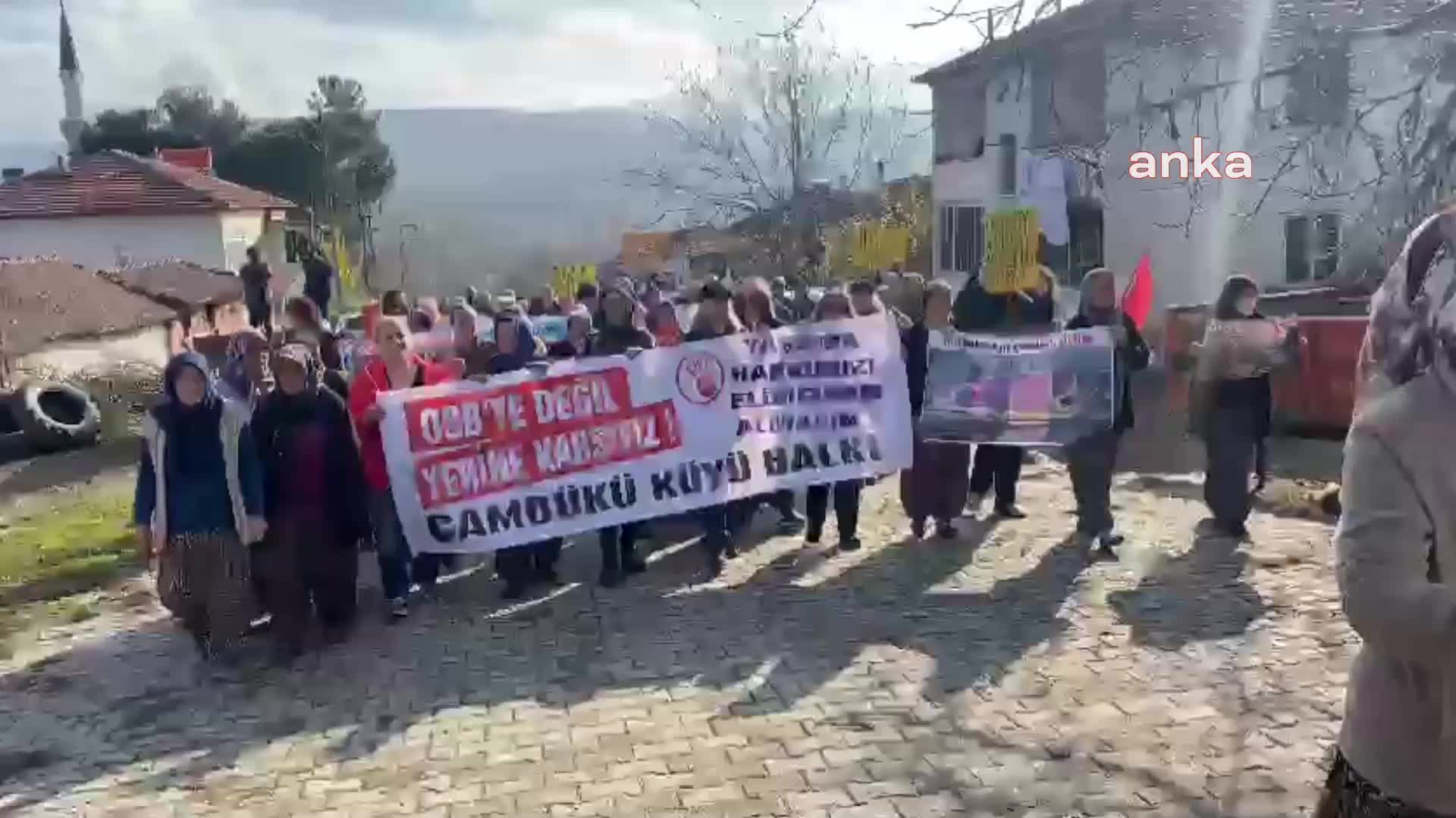 “50 ailelik bir köyüz, çalışmayı ve üretmeyi seviyoruz. Köyümüze dokunmasınlar. Sayın valimize, kaymakamımıza, belediye başkanımıza ve tüm büyüklerimize sesleniyorum, köyümüze dokunmasınlar. Bamya yapıyoruz, hayvanlarımızı da yetiştiriyoruz, bamya yetiştiriyoruz, Çocuklarımızı da büyütüyoruz, torunlarımızı değil.” Bir şey diyemeyiz. Topraklarımızı elimizden alıyorlar. Yine muhterem hükümdarımıza diyorum ki, yurdumuzu terk etsin. Organize sanayi istemiyoruz. Yaşama hakkımızı elimizden alıyorlar. Bizi bıraksınlar, köyümüzü terk etsinler, toprağımızı terk etsinler. Çalışmayı seviyoruz. Tüm kadınlar gibi biz de 30-40 kadınız, çalışmayı seviyoruz.