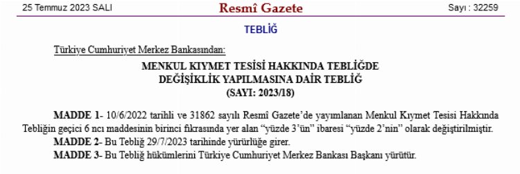 Ayrıca Resmi Gazete’de yayımlanan değişiklik tebliğine göre piyasa mekanizmasının etkinliğinin artırılması amacıyla menkul kıymet kuruluşunun uygulaması faiz oranına göre basitleştirilmiştir.