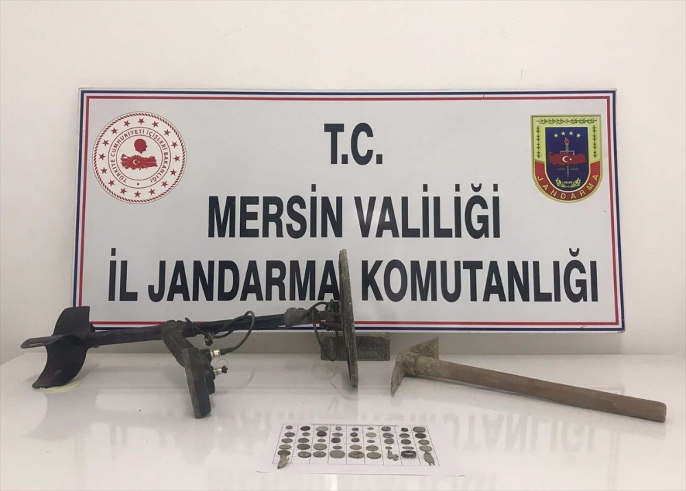 Şüphelinin evinde yapılan aramada, Roma ve Bizans dönemlerine ait olduğu değerlendirilen 42 sikke ve 4 obje ile dedektör bulundu.