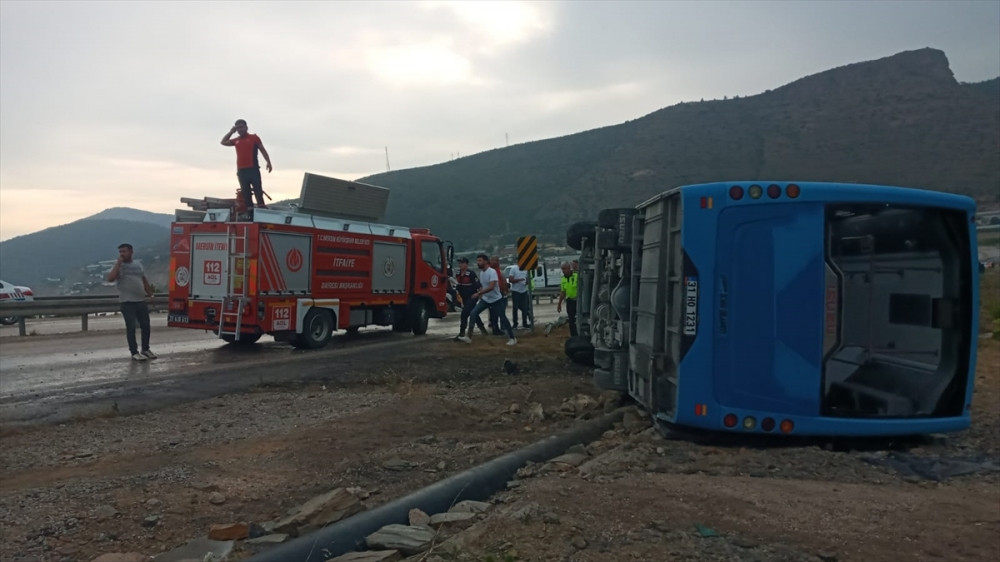 Bariyeri kırarak yol kenarına yuvarlanan servis aracında 12 işçi yaralandı.