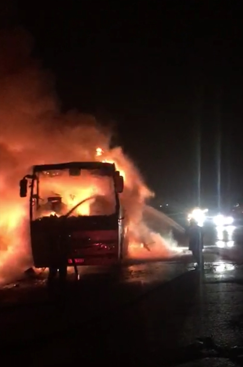 Yangın nedeniyle otobüste maddi hasar oluştu.