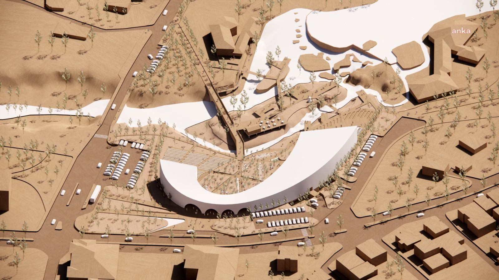 Projenin bir kimlik ve unutulmaz bir kullanıcı deneyimi yaratan mimari öğeler kullanılarak tasarlandığına işaret eden Jag, “Binanın kütlesi yay şeklinde çözülerek şelaleyi kucaklayan merkezi bir avlu oluşturuldu. yay şeklinde tasarımı, çift cidarlı revaklarla içi boş bir yapıya dönüşerek geçirgen bir kamusal alan oluşturmaktadır. Sinan Bulvarı’nın kuzeyinde yer alan ve cadde ile iç avlu ve kamusal yeşil alan arasında bağlantı kuran, iklim ve konum açısından uygun bir çözüm olarak görülüyor.