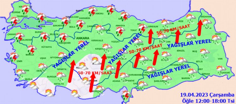 Meteoroloji Genel Müdürlüğü’nden yapılan son değerlendirmelere göre: Ülkemizin parçalı ve çok bulutlu, Konya, Aksaray ve Kerman dışında tüm bölgelerin yerel olmak üzere aralıklı sağanak ve yer yer gök gürültülü sağanak yağışlı geçeceği tahmin ediliyor. Doğu Karadeniz bölgesinin iç kesimlerinde ve Doğu Anadolu’da kar örtüsü fazla olan yamaçlarda çığ tehlikesi bulunmaktadır.