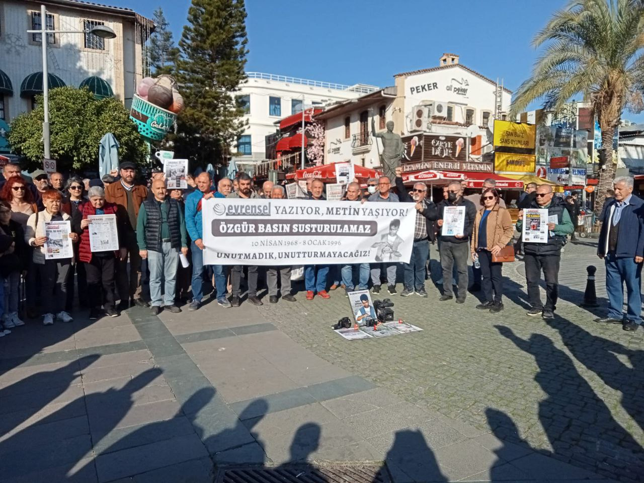 Universal Gazetesi Antalya temsilcisinin davetlisi olarak Attalos’un heykeli önünde toplanan Antalyalılar, Metin Göktepe’nin doğum yıl dönümünü kutladı. Grup adına konuşan Evrensel gazetesi muhabiri Mehmet Zangül, şunları söyledi: Metin Göktepe, Ümraniye E Tipi Cezaevi’nde şehit olan Orhan Özen ve Rıza Boybaş’ın cenazesini izlemek için gittiği Alibeyköy’de polis tarafından gözaltına alındı. 8 Ocak 1996’ya sevk edildi Tanıkların ifadelerinde, “Bu gazeteciye özel muamele yapalım” diyen polisler tarafından işkence edilerek öldürüldü.