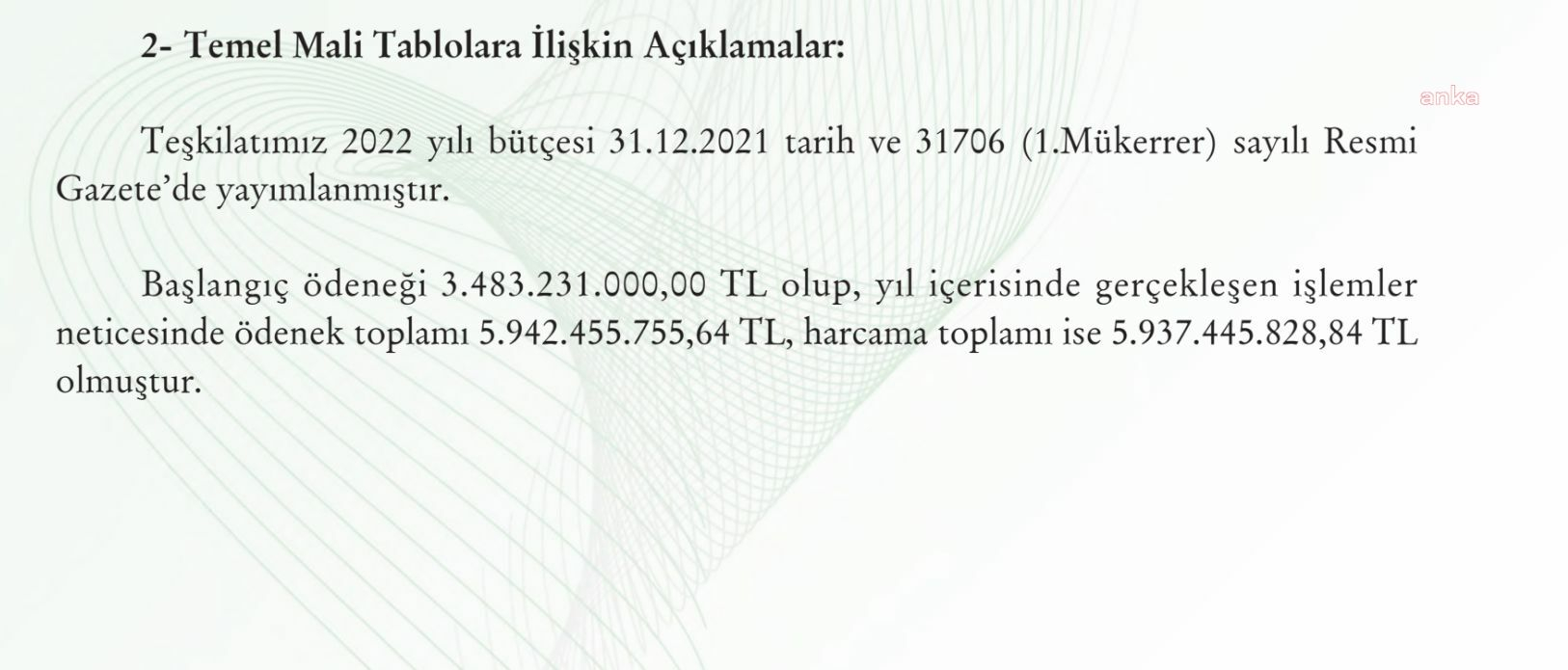 Milli İstihbarat Teşkilatı’nın (MİT) 2022 yılı yıllık raporu yayınlandı.Rapora göre; MİT’e 3 milyar 483 milyon 231 bin lira olan başlangıç ​​ödeneği yetmedi, yıl içinde yapılan işlemler sonucunda ödenek 5 milyar 942 milyon 455 bin 755 liraya çıkarıldı. MİT’in yıl sonu harcaması ise 5 milyar 937 milyon 445 bin 828 lira oldu. Massachusetts Institute of Technology’nin başlangıç ​​ödeneklerini 2 milyar 454 milyon 214 bin 828 lira aştığı kaydedildi. Başlangıç ​​ödeneğini yüzde 70 aşan MİT’in günlük harcaması ise 16 milyon 266 bin 974 lira oldu.