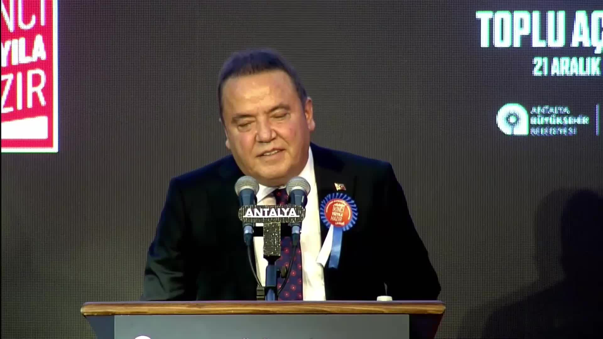 “Hayatım boyunca en büyük gururum ve onurum Antalya’ya hizmet etmek olmuştur. Çeyrek asrı aşkın süredir hizmet yolculuğumun her anında ne kadar şanslı olduğumu düşündüm. Bu kutsal görevi üstlendiğim günden beri, Hayatımın her adımını hemşehrilerime duyduğum sorumlulukla, Vatan ve Vatan sevgisiyle atmış, gücümü sizden, sevgiden, Atatürk’ten ve her şeyimizi borçlu olduğumuz Cumhuriyet’ten almıştım. 45 ay önce , Güzel Antalya için daha büyük sorumluluklar üstlendik Şeması, kuralı ve kimliği olan bir şehir olma hedefiyle çıktığımız bu yolda ortak akılla şehrimizi sizlerle birlikte koştuk Dokunmak için gecemizi gündüzümüzü harcadık. yediden yetmişye kadar herkes Hizmette siyaset yapmadık Milletin hizmetini Allah’a hizmet olarak gördük Kimseyi ötekileştirmedik Her şeye rağmen engellere rağmen asla pes etmedik tıpkı İstanbul Büyükşehir Belediye Başkanı Ekrem İmamoğlu gibi Ekrem İmamoğlu’na buradan selamlar.