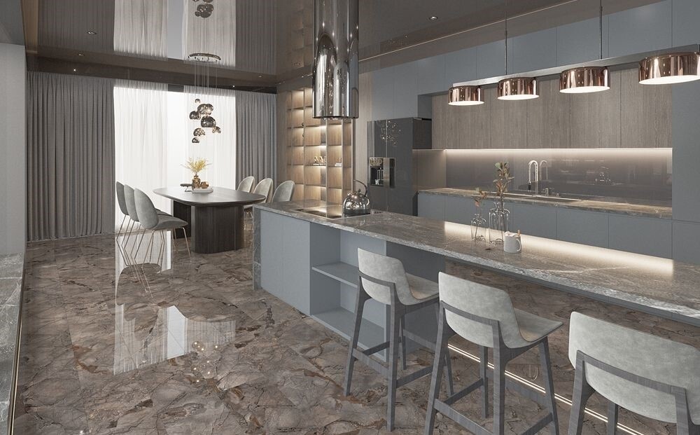 Mutfak dekorasyonunda yüzey kaplama malzemesinin ağırlıklı olarak su geçirmez ve darbelere dayanıklı olmasına dikkat etmelisiniz. Aynı zamanda mutfak zemini kolay temizlenebilir olmalıdır. Bu konuda en çok tercih edilen yüzey kaplama malzemesi seramiktir. Granit seramik ile özel olarak döşenen mutfaklar oldukça hijyenik ve şık olacaktır. Ayrıca seramiğin su geçirmez olması ve kolay temizlenebilir olması kullanıcılar için büyük bir konfor alanı oluşturmaktadır. Burada dikkat edilmesi gereken tek nokta, seçilecek karoların renginin diğer mutfak gereçleri ile uyumlu olması gerektiğidir.