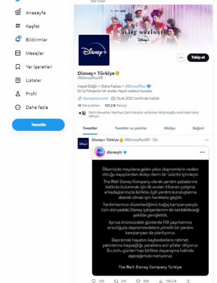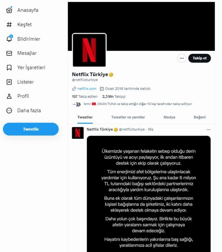 Depremin ikinci gününden itibaren başlayan tepkiler çığ gibi büyürken, depremin dördüncü gününde Netflix, Disney ve Starbucks’tan deprem duyuruları da geldi.