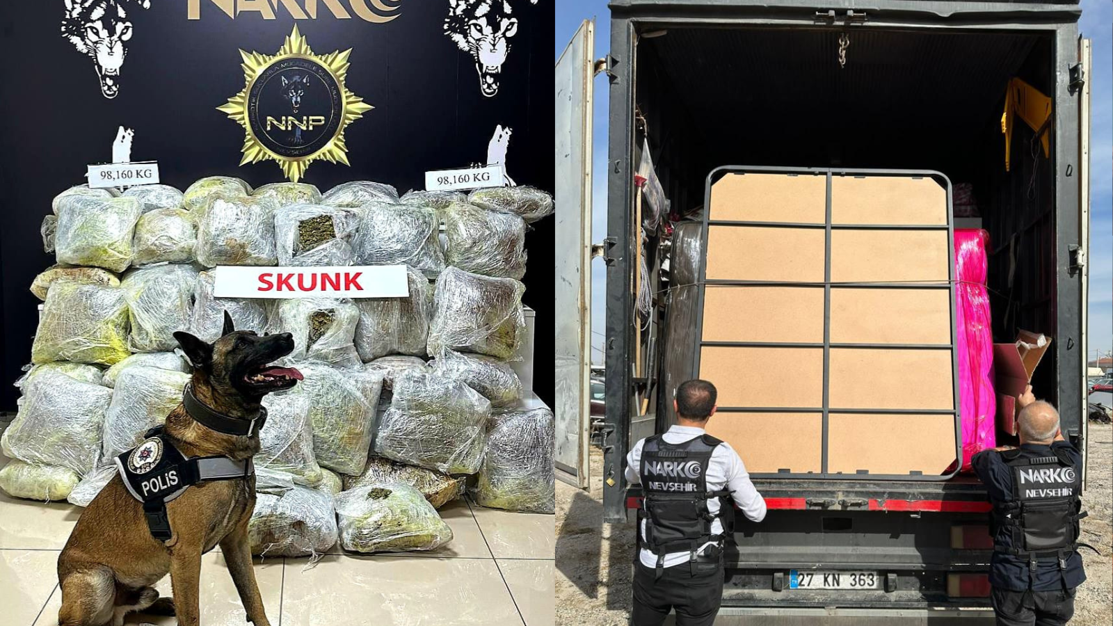 İl Emniyet Müdürlüğü Narkotik Suçlarla Mücadele Şubesi ekipleri, şüphelendikleri 27 KN 363 plakalı kamyonu, Nevşehir-Aksaray kara yolu Terminal Kavşağı’nda durdurdu.