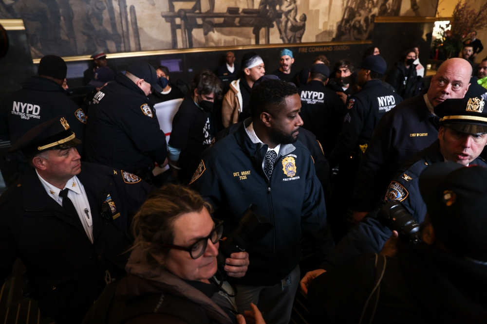 New York Polis Teşkilatı (NYPD) tarafından televizyon binasının çevresinde ve lobisinde geniş güvenlik önlemleri alındığı görüldü. 50’ye yakın gösterici de gözaltına alınarak polis otobüslerine bindirildi.