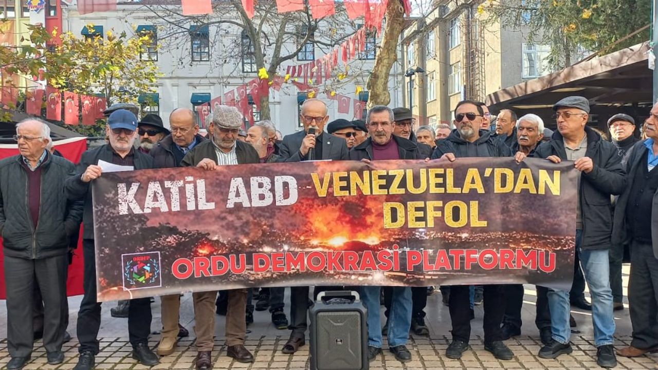 Amerika Birleşik Devletleri (ABD) tarafından Venezuela’ya yönelik gerçekleştirilen askeri operasyon ve Devlet Başkanı Nicolas Maduro ile eşinin kaçırılması, Ordu’da düzenlenen bir gösteriyle protesto edildi. Çeşitli siyasi parti, sendika ve derneklerin katılımıyla oluşan Ordu Demokrasi Platformu bileşenleri, Tahıl Pazarı Meydanı’nda bir araya gelerek yaptıkları basın açıklamasıyla sürece tepki gösterdi.