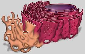 ER’den gelen proteinler daha fazla modifikasyon gerektiriyorsa, Golgi aparatına taşınırlar. ER aparatı gibi, Golgi aparatı da katlanmış zarlardan oluşur. Proteinin amino asit dizilişinde özel “kodlar” arar ve bunları buna göre değiştirir. Bu işlenmiş proteinler daha sonra Golgi aparatında depolanır veya hücrede başka bir yere taşınmak üzere kesecikler halinde paketlenir.