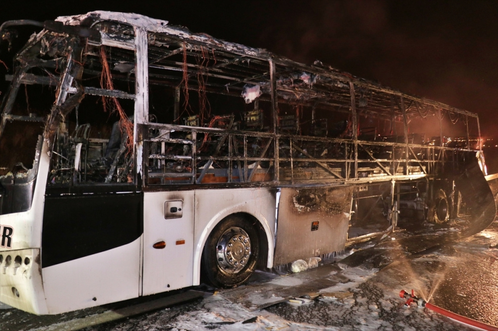 Yangında otobüs kullanılamaz hale geldi. (AA)