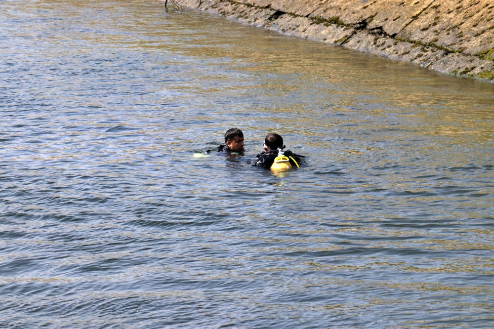 Suda kaybolan ve Muhammed Musullu (22) olduğu öğrenilen genci bulmak için Osmaniye Belediyesi itfaiyesine bağlı dalgıçların çalışması sürüyor. (AA)