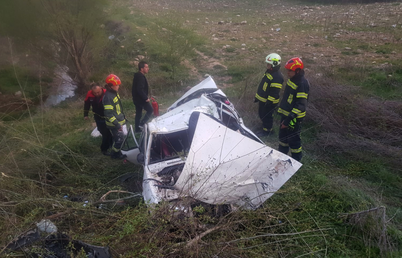 Çarpışmanın etkisiyle her iki araç da şarampole devrildi.