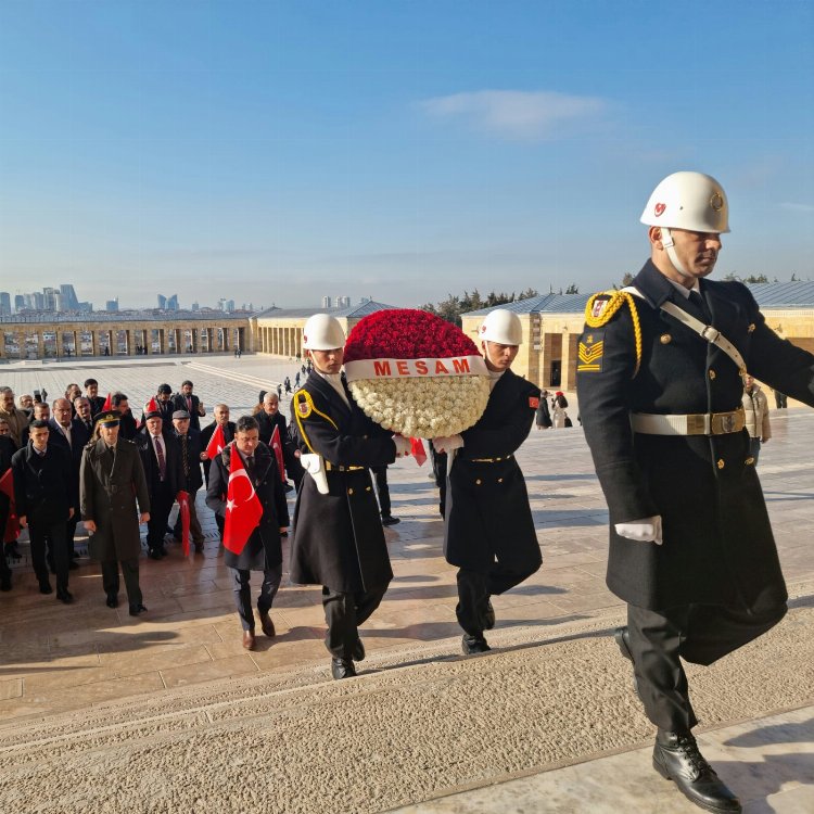 Cumhurbaşkanı Recep Ergül ve heyet, Atatürk’ün mozolesine ilk olarak çelenk koydu.