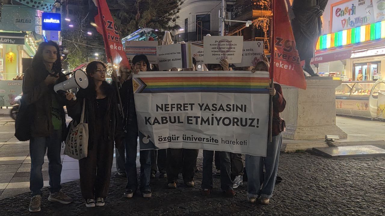 Özgür Üniversite Hareketi, Antalya Attalos Meydanı’nda yaptığı basın açıklamasıyla LGBTİ+’ların haklarını hedef aldığı belirtilen yasa taslağına karşı çıktı.