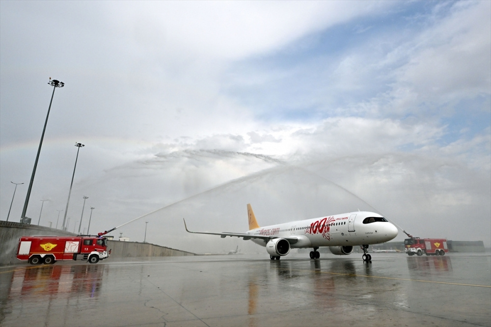 İSTANBUL (AA) – Pegasus Hava Yollarının Cumhuriyet’in 100. yılında filosuna kattığı “Cumhuriyet” isimli 100. uçağı, İstanbul Sabiha Gökçen Havalimanı’na indi.