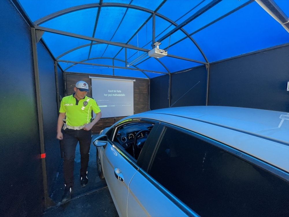 Polo’da oluşturulan “Hayat Tüneli”nde sürücüler trafik kuralları konusunda bilgilendiriliyor.
