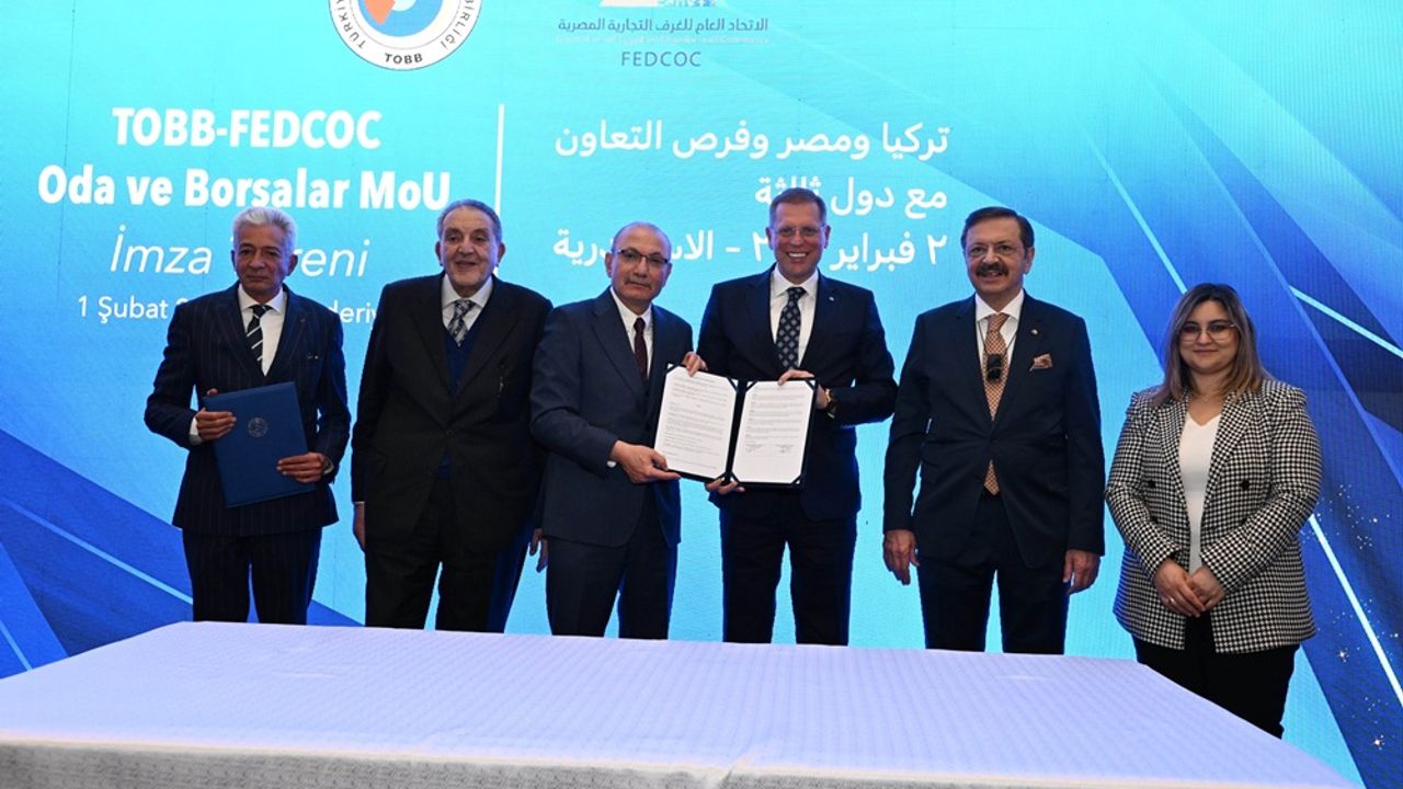 Cumhurbaşkanı Erdoğan’ın ziyareti öncesinde iş dünyasının diplomatik zemini güçlendirdiği süreçte, Türkiye Odalar ve Borsalar Birliği Başkanı M. Rifat Hisarcıklıoğlu ile birlikte 227 Oda ve Borsa başkanı Kahire’de bir araya geldi.