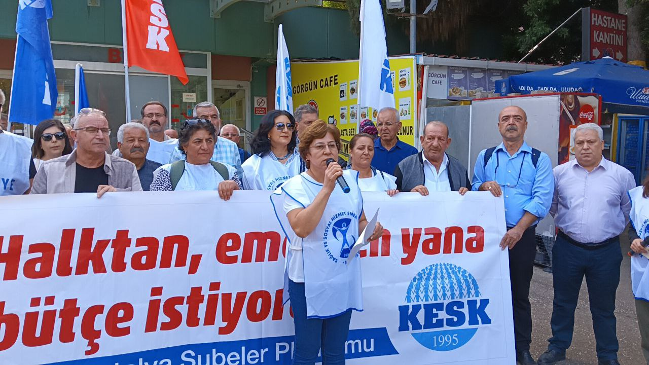 KESK Antalya Şubeler Platformu TBMM’de görüşülecek olan Sağlık Bakanlığı Bütçesine ilişkin Atatürk Devlet Hastanesi önünde basın açıklaması yaptı. Basın açıklamasında konuşan Sağlık ve Sosyal Hizmet Emekçileri Sendikası (SES) Antalya Şube Başkanı Şükran İçöz şunları ifade etti. “Sağlık Bakanlığı’nın 2024 yılı bütçe teklifine baktığımızda, metalaşmış, ticarileşmiş tedavi edici hizmetlerin en büyük paya sahip olduğunu görmekteyiz. Ödeneklerin ne kadarının “tedavi edici hizmetlere” ne kadarınınsa “koruyucu hizmetlere” ayrıldığı önemlidir. Bu göstergeler bile tek başına sağlık politikalarının ne olduğunu görmemizi sağlamaktadır.