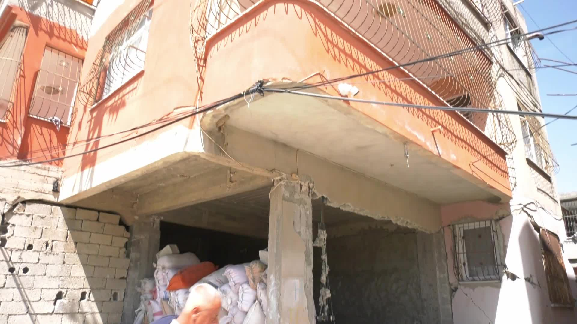 Sutaşi mahallesi ıssız görünüyor… Burada da görebileceğiniz gibi çok sayıda hasarlı ev var. Üst katta evleri yıkılan ve aileleri kayıp olan insanlar var. Onlara yaklaşan herhangi bir yardım veya otorite gördüğümü sanmıyorum. Bu yüzden başımız çok belada. Bu durumların çözülebileceğini umuyoruz, bu bizim umudumuz. Yetkililere diyeceğimiz tek şey, umarım bu durumu bir an önce çözerler. Bu bizim umudumuz. Ağır hasarlı bu evlere ne olduğunu çok merak ediyoruz. Herhangi bir bilgi olursa çok seviniriz. Onu bekliyoruz.