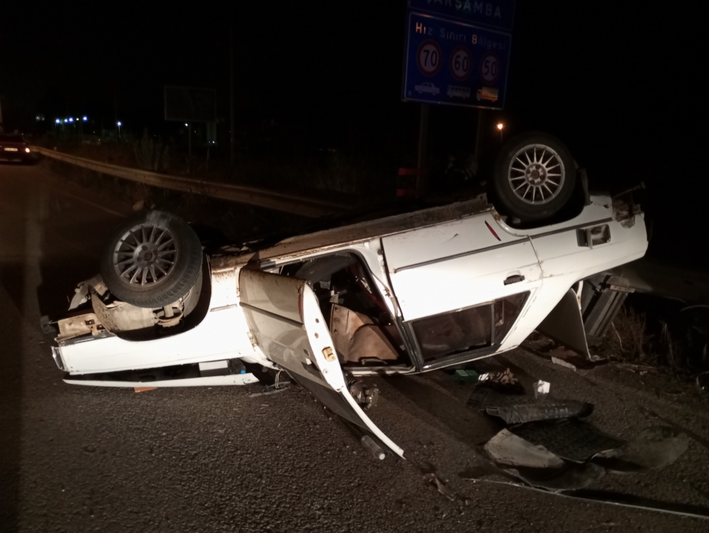 Samsun-Ordu kara yolu Beylerce mevkisinde “U” dönüşü yapmak isteyen Ercan K. idaresindeki HP EC 55 yabancı plakalı minibüs, Çarşamba istikametine seyreden Yunus Emre T. kontrolündeki 55 PB 204 plakalı otomobile çarptı.