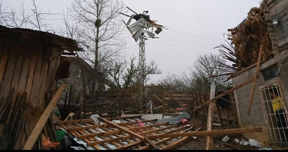 Şiddetli rüzgar nedeniyle bazı evlerin çatıları uçtu. Uçan çatı parçalarının elektrik direklerine çarpması sonucu teller koptu.