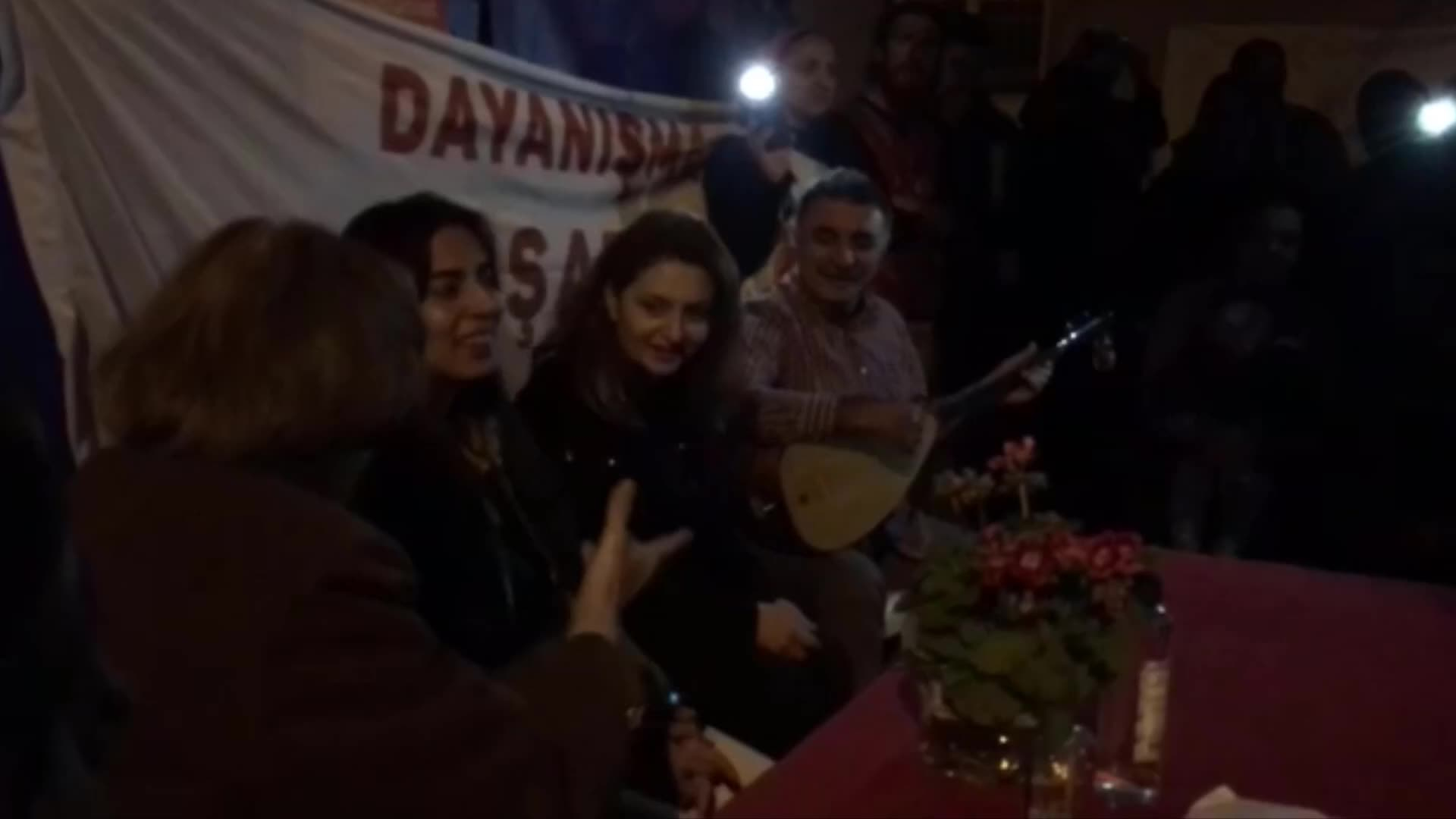 Samandağ, Defne ve İskenderun’da depremzedelerle bir araya gelen sanatçılarla dayanışma töreninde, Türkiye’nin dört bir yanından depremzedelere dayanışma kutuları dağıtılırken, kadınlara karanfil dağıtıldı.