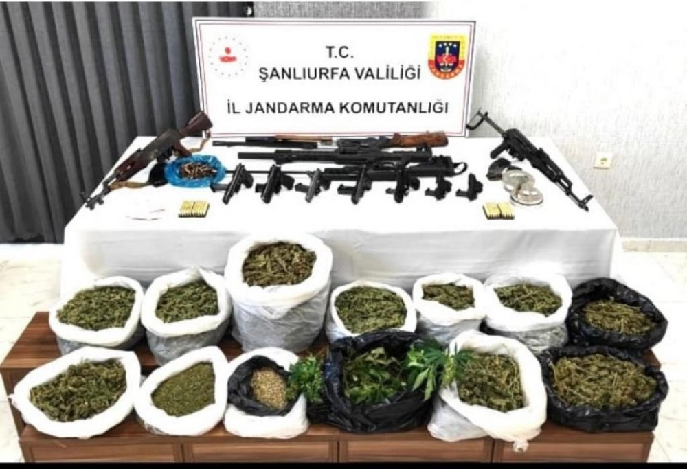 Adreslerde yapılan aramalarda, 23 kilo 800 gram esrar, 1 kilo 600 gram kenevir tohumu, 721 kök kenevir bitkisi, 2 uzun namlulu silah, 7 tabanca, 2 hassas terazi ele geçirildi.