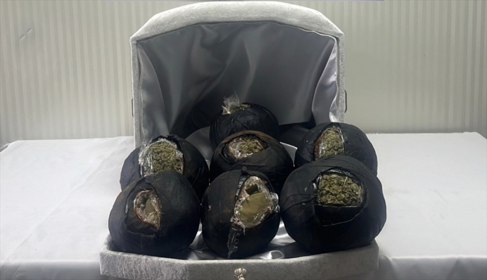Narkotik köpeği “Sebat”ın da katıldığı aramada, otobüsün bagaj kısmında 5 kilogram sentetik uyuşturucu, 2 kilogram esrar ele geçirildi.