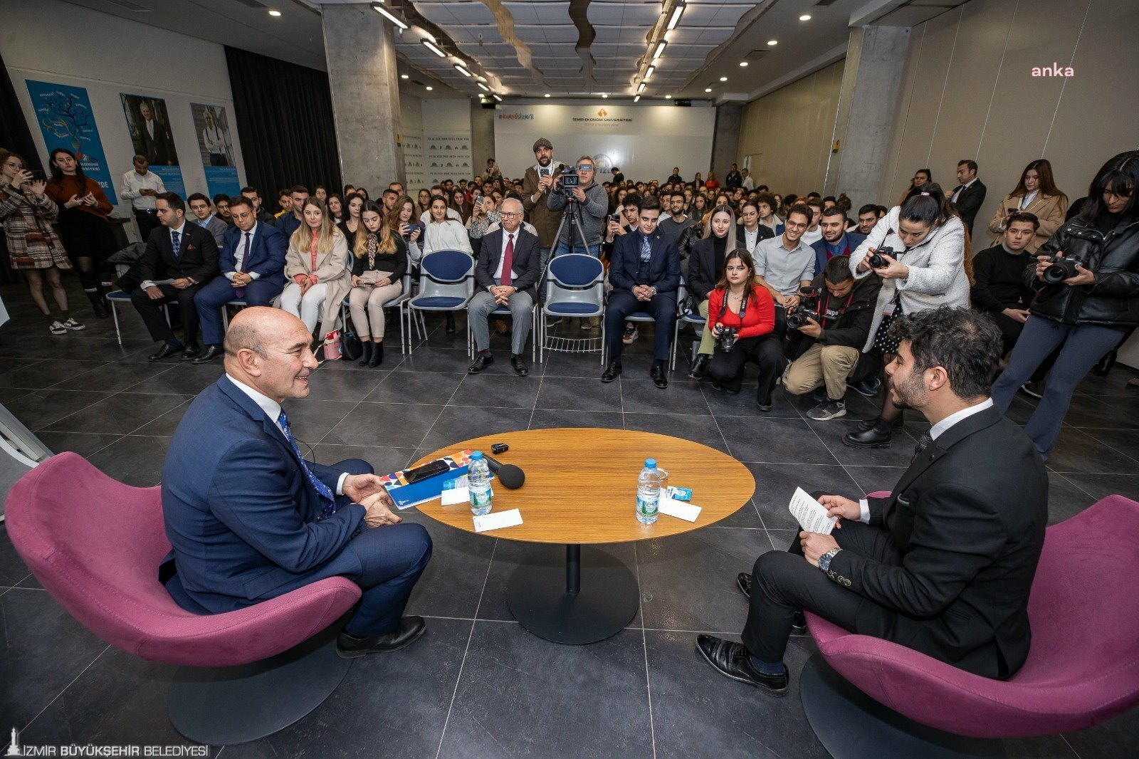 İzmir Büyükşehir Belediye Başkanı Tunç Soyer, İzmir Ekonomi Üniversitesi’nde (İEÜ) öğrencilerle “Yerel Yönetimler ve Demokrasi” konulu söyleşiye katıldı. İEÜ Rektörü Prof. Doktor. Murad Aşkar ona eşlik etti. Öğrenciler tarafından alkışlarla karşılanan Başkan Tung Su’er, gençlerin sorularını yanıtladı.