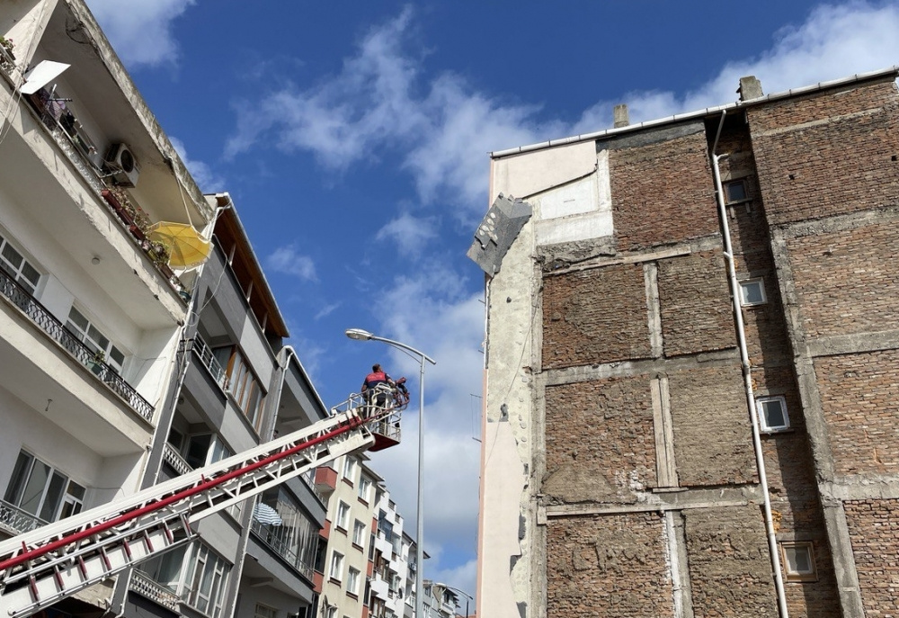 İhbar üzerine olay yerine sevk edilen Sinop Belediyesi itfaiye ekipleri, herhangi bir tehlike oluşturmaması için binanın dışında hasar gören diğer malzemeleri söktü.