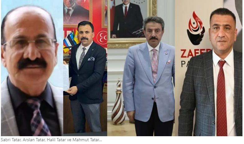 Y. Refah Partisi’nden Sabri Tatar, AKP’den Arslan Tatar, MHP’den MHP Şırnak İl Halil Tatar ve Zafer Partisi’nden Mahmut Tatar.