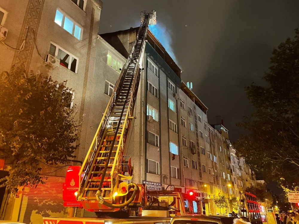 Şişli’de 7 katlı binanın çatı katında çıkan yangın itfaiye ekiplerince söndürüldü.