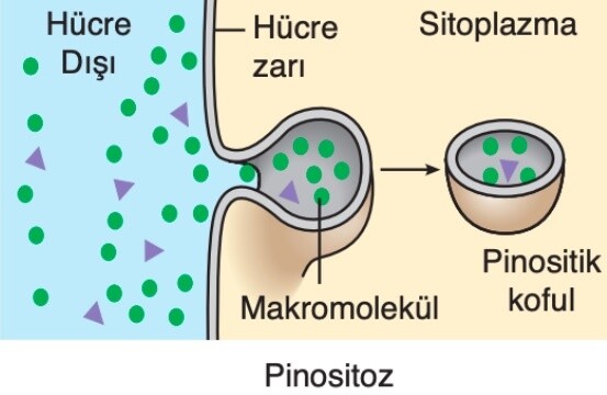 • Plazma zarı içe doğru esner (yayılır), hücre dışı sıvı ve çözünen parçacıklarla dolan bir çöküntü veya boşluk oluşturur.
