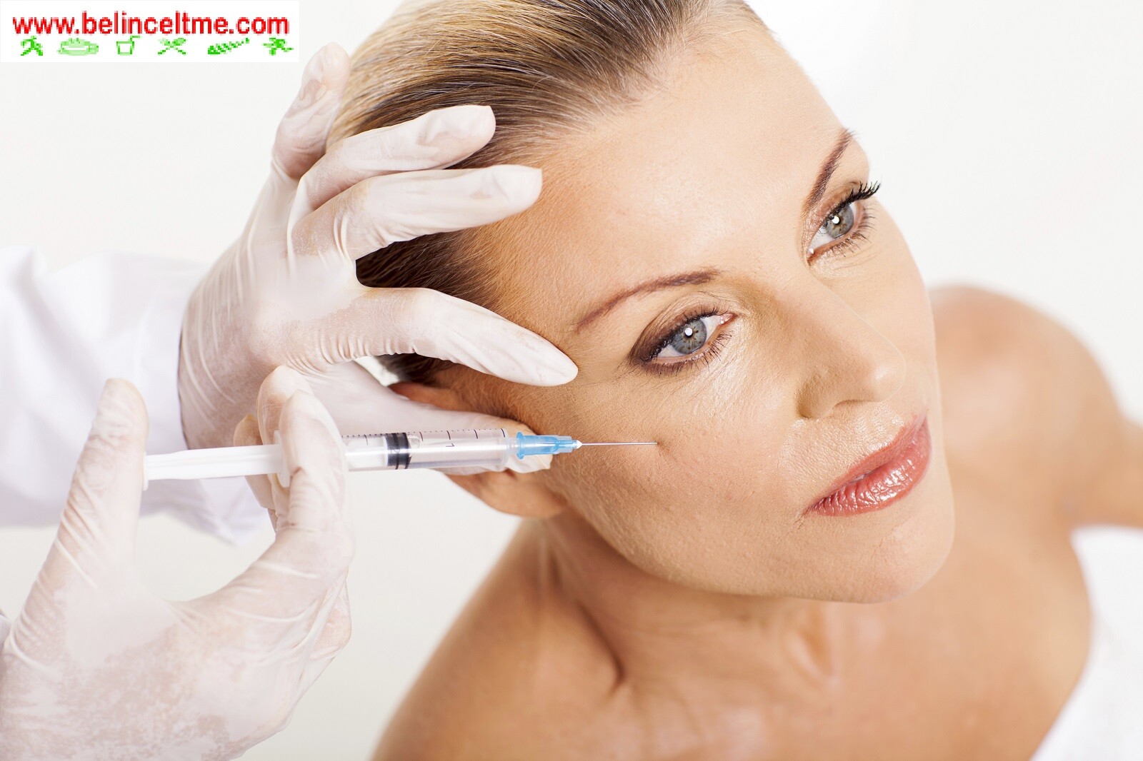Doktor orta yaşlı kadına yüz germe enjeksiyonu yapıyor.