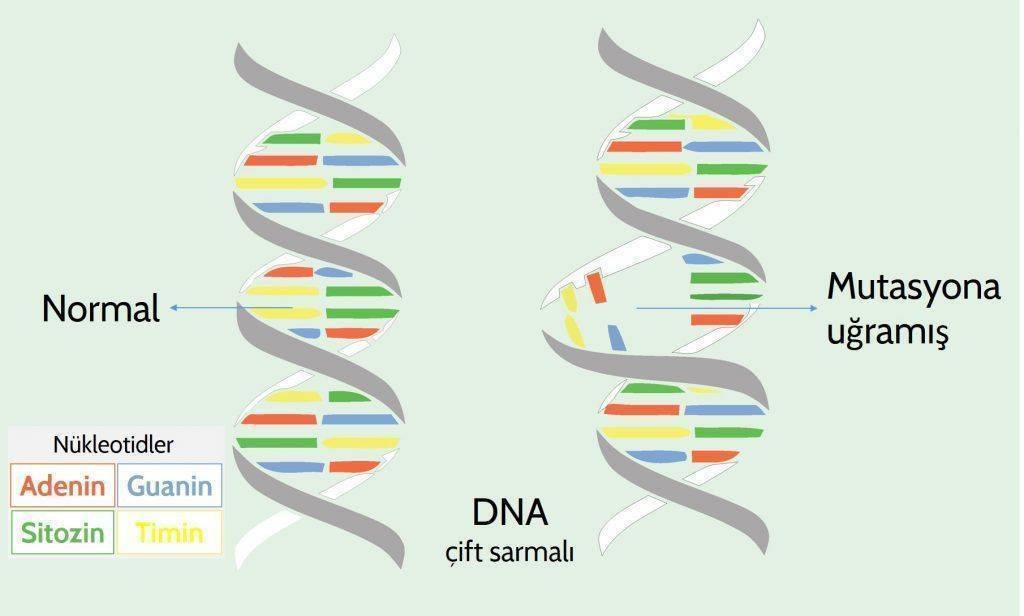 Nokta Mutasyonları: DNA’daki tek bir nükleotidin değişmesiyle oluşan mutasyonlardır. Bu tür mutasyonlar genellikle hücrelerin protein yapımını etkileyerek çeşitli hastalıklara yol açabilirler.