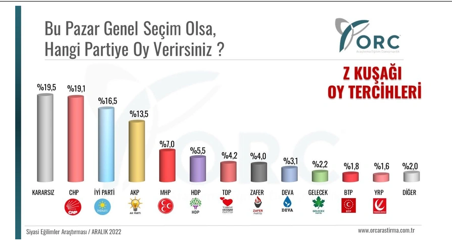 ORC Araştırma, 27-30 Kasım 2022 tarihleri arasında 42 ilde Z kuşağı seçmenlerinden oluşan 2.730 kişi ile yüz yüze anket gerçekleştirdi.