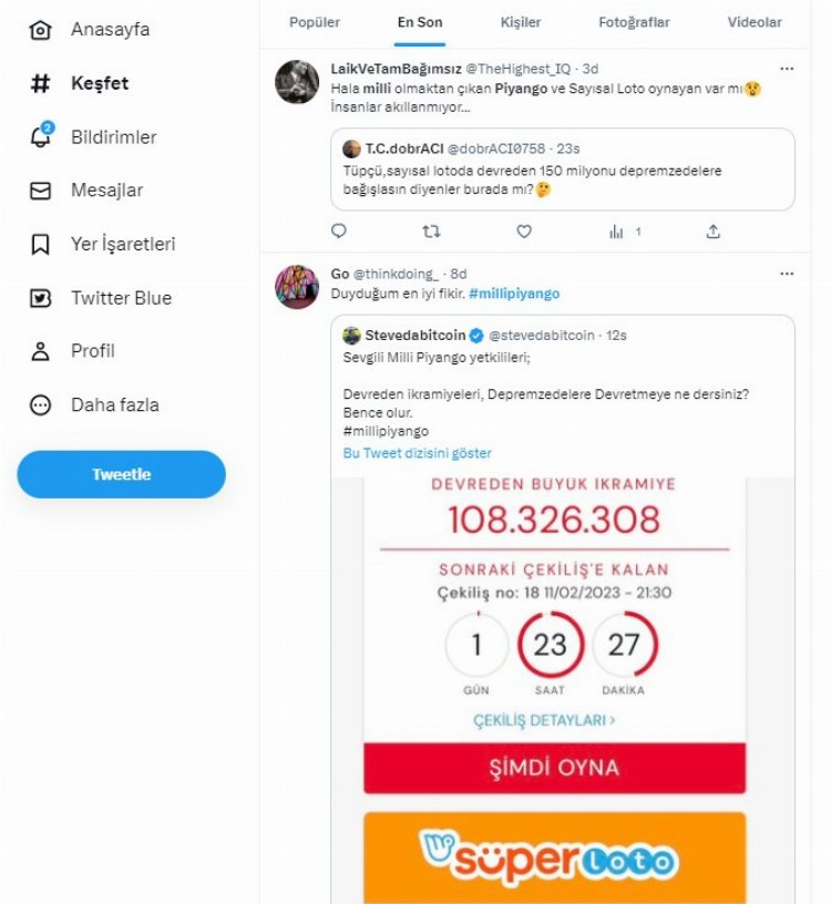 “Kampanya başlatalım, Milli Piyango İdaresi’nin topladığı 10 Süper Loto şans oyunları dijital ikramiyesini depremzedelere bağışlayalım”